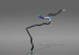 注穿过车辆 RH 侧拆下该软管。根据需要轻轻移动软管,以清除周围的任何物体。