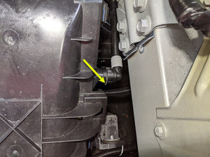 - 松开将冷却液软管固定到散热器入口的弹簧夹,将软管从散热器上拆下,然后堵住内外螺纹接头。