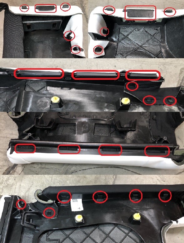 - 松开将第三排 LH 饰板罩固定到 LH 靠背基板的锁片 (x26)。