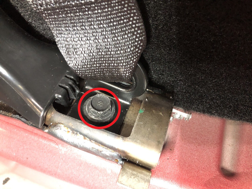 安装将第三排 LH 座椅安全带卷收器固定到座椅骨架总成的螺栓。