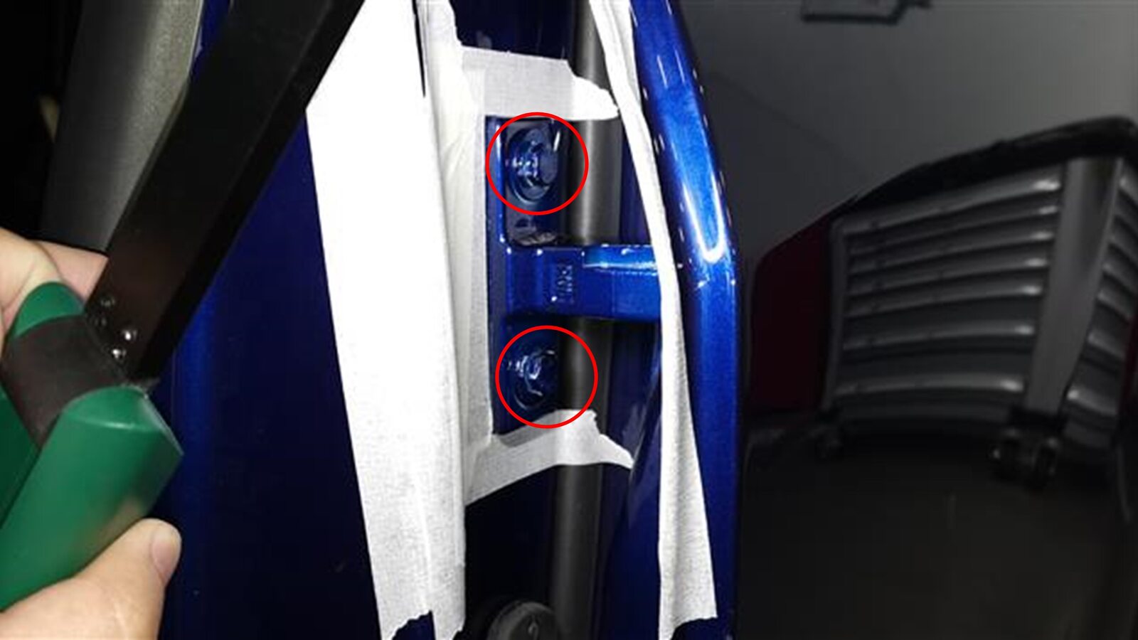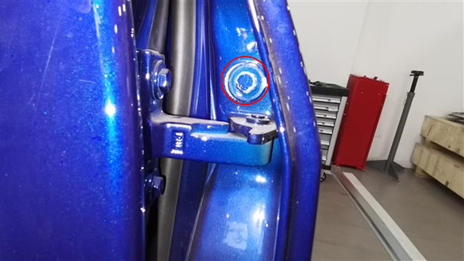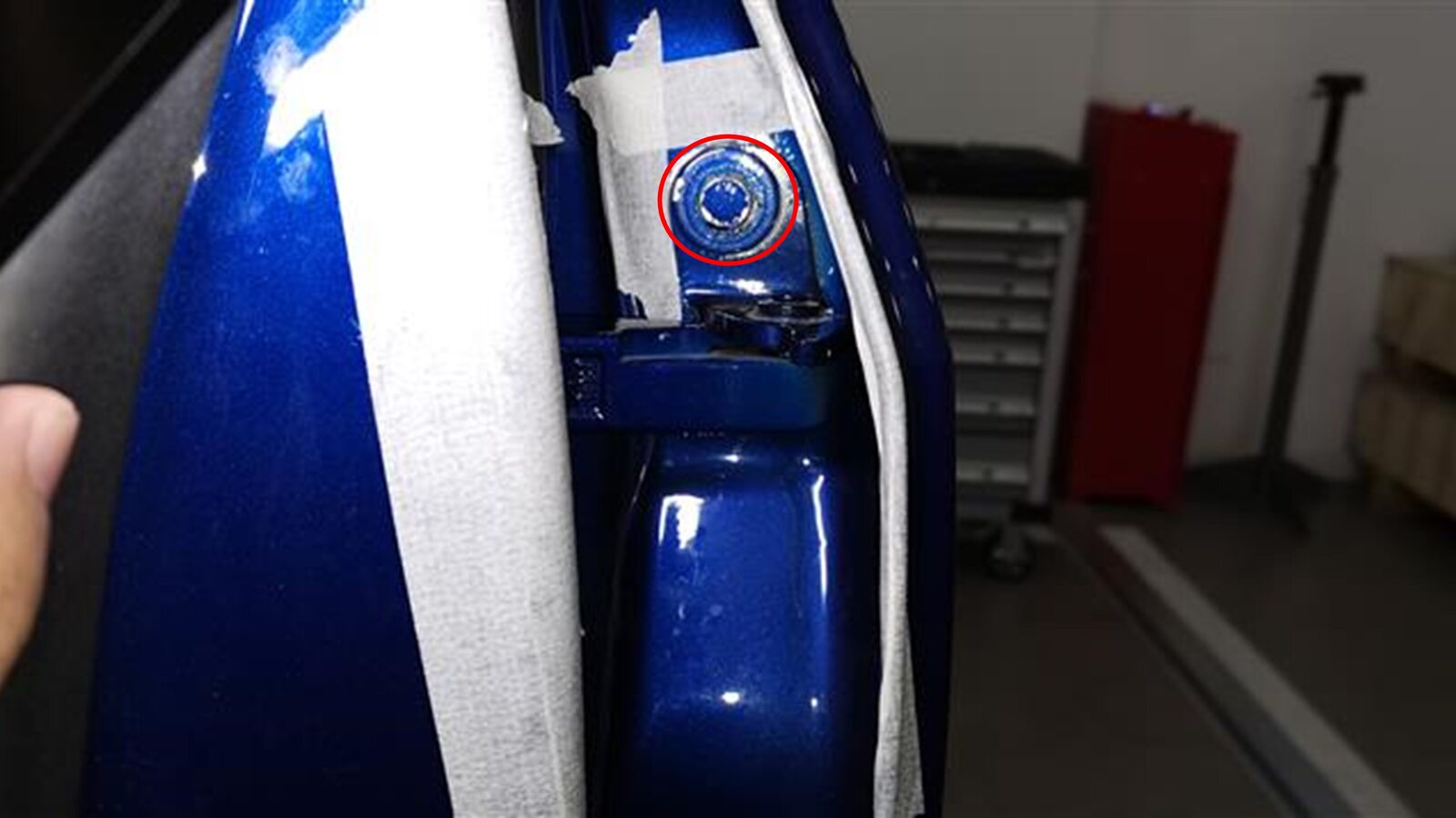 向铰链螺栓上涂抹修补漆。
