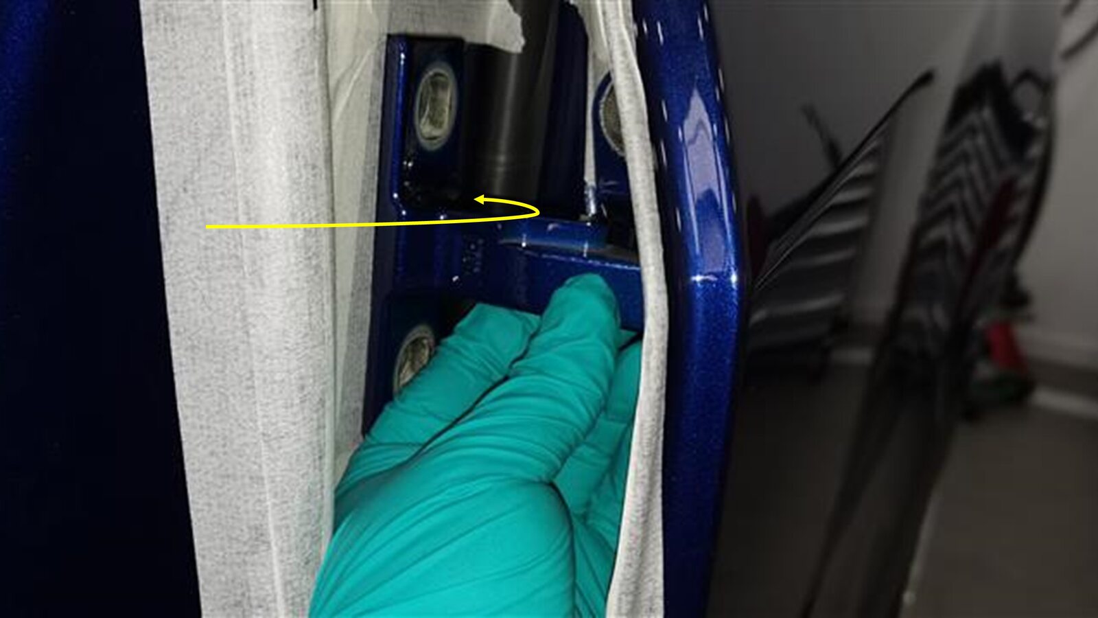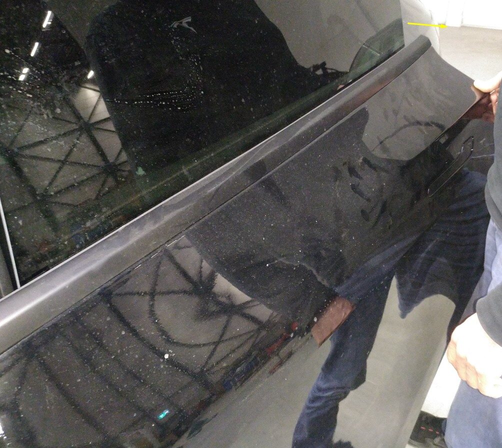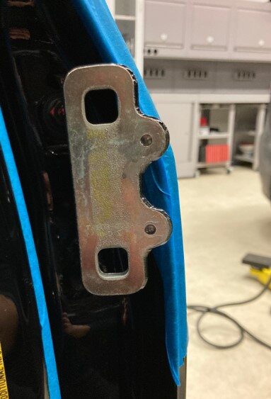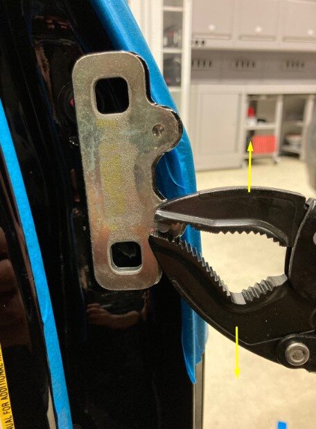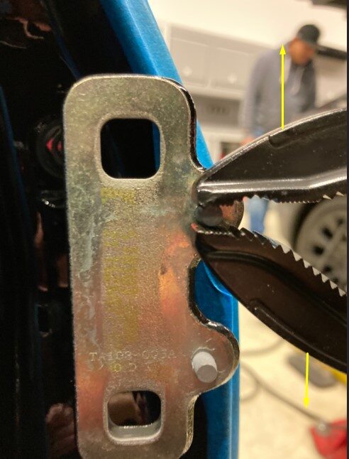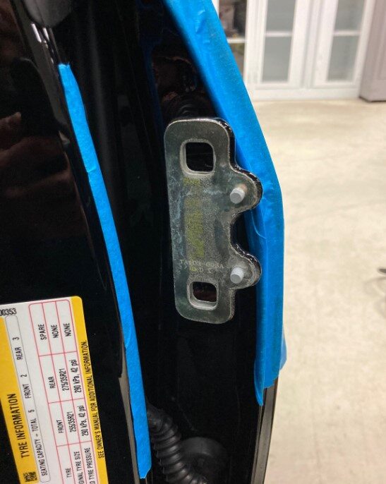 - 撕下 LH 车身侧和车门侧上部铰链位置处的胶带。