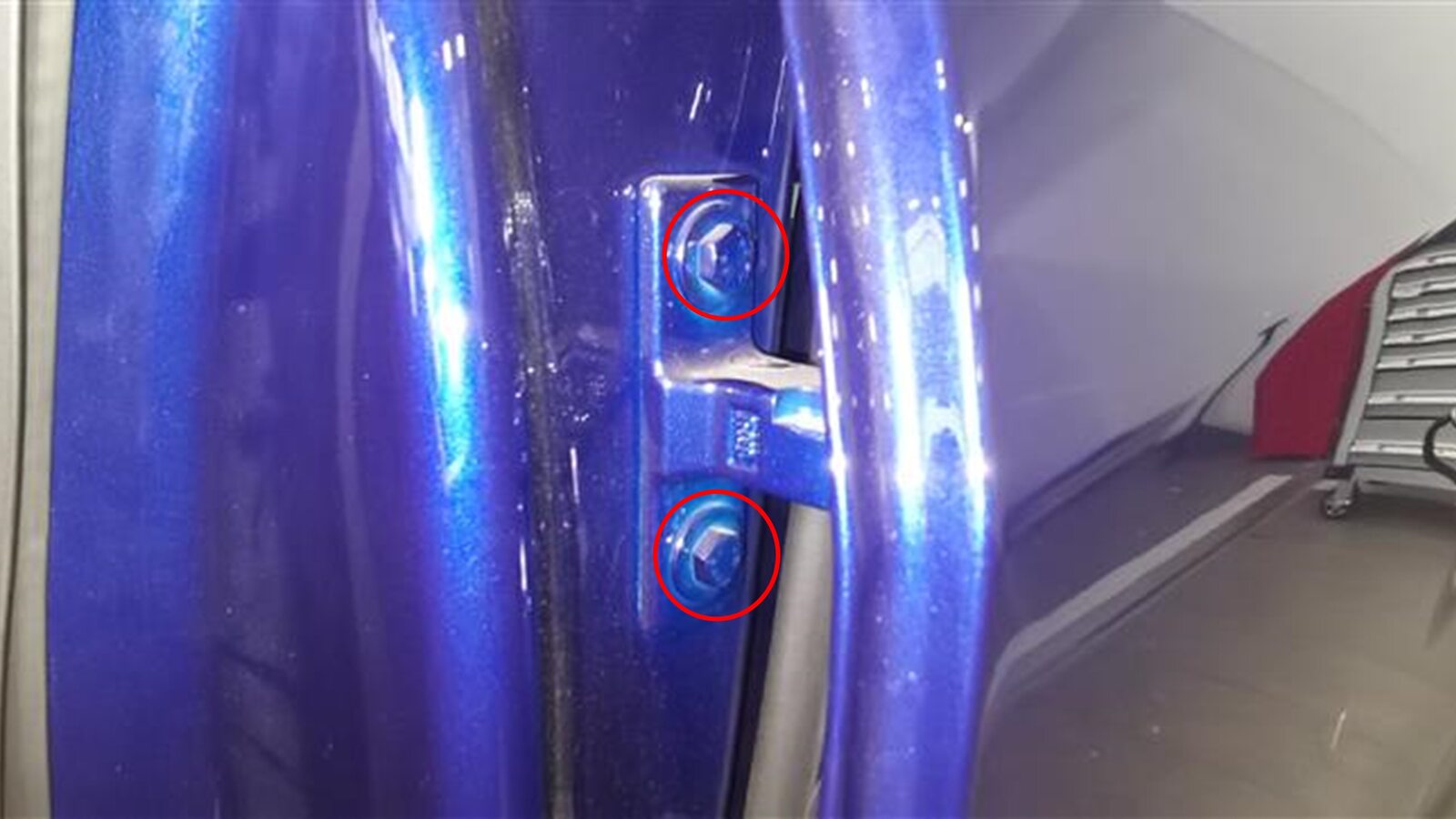 - 手动拧紧将铰链固定到车身的螺栓 (x2)。