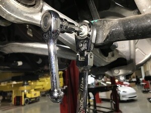 - 将 LH 前下方柔性连杆安装到前副框架上