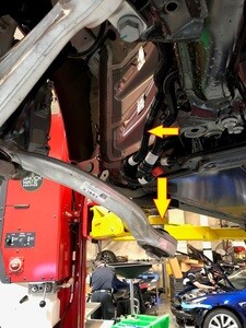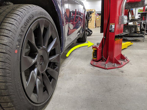 注确保车辆在升离地面前未处于充电状态,将空气悬架设置为“千斤顶模式”(如果配备)