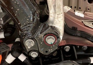 注2 个螺栓,21 毫米,115 Nm;建议在需要时请助手帮忙;使用冲头工具对齐紧固件