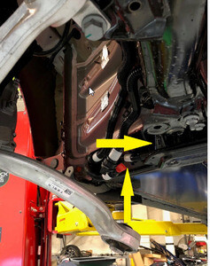 拧紧将前副框架后部固定到车身的 RH 小号螺栓