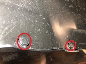 拆下将前裙板 RH 角固定到前饰板的螺母