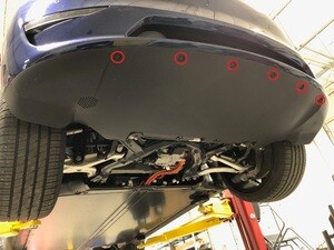 拆下将前裙板固定到前饰板的夹子,然后拆下前裙板