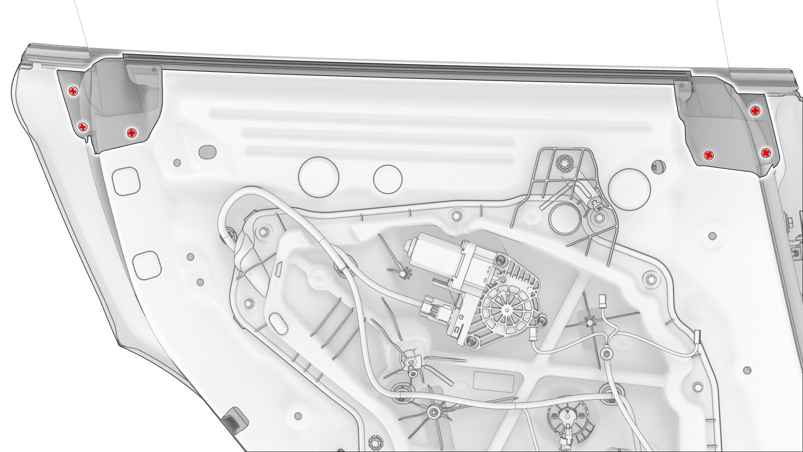 - 拆下 LH 后门饰板。请参阅面板 - 车门饰板 - 后 - LH(拆卸和安装)。