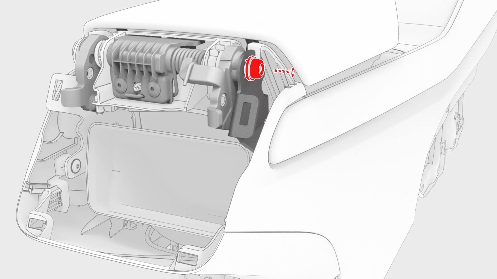 - 将扶手铰链销的卡槽与扶手枢轴孔对齐。