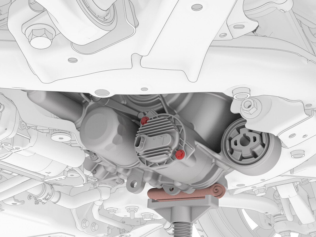 注Tesla 建议在拆下机油滤清器后立即更换新的机油滤清器。凡是存在明显腐蚀或泄漏的机油滤清器都必须更换。 -