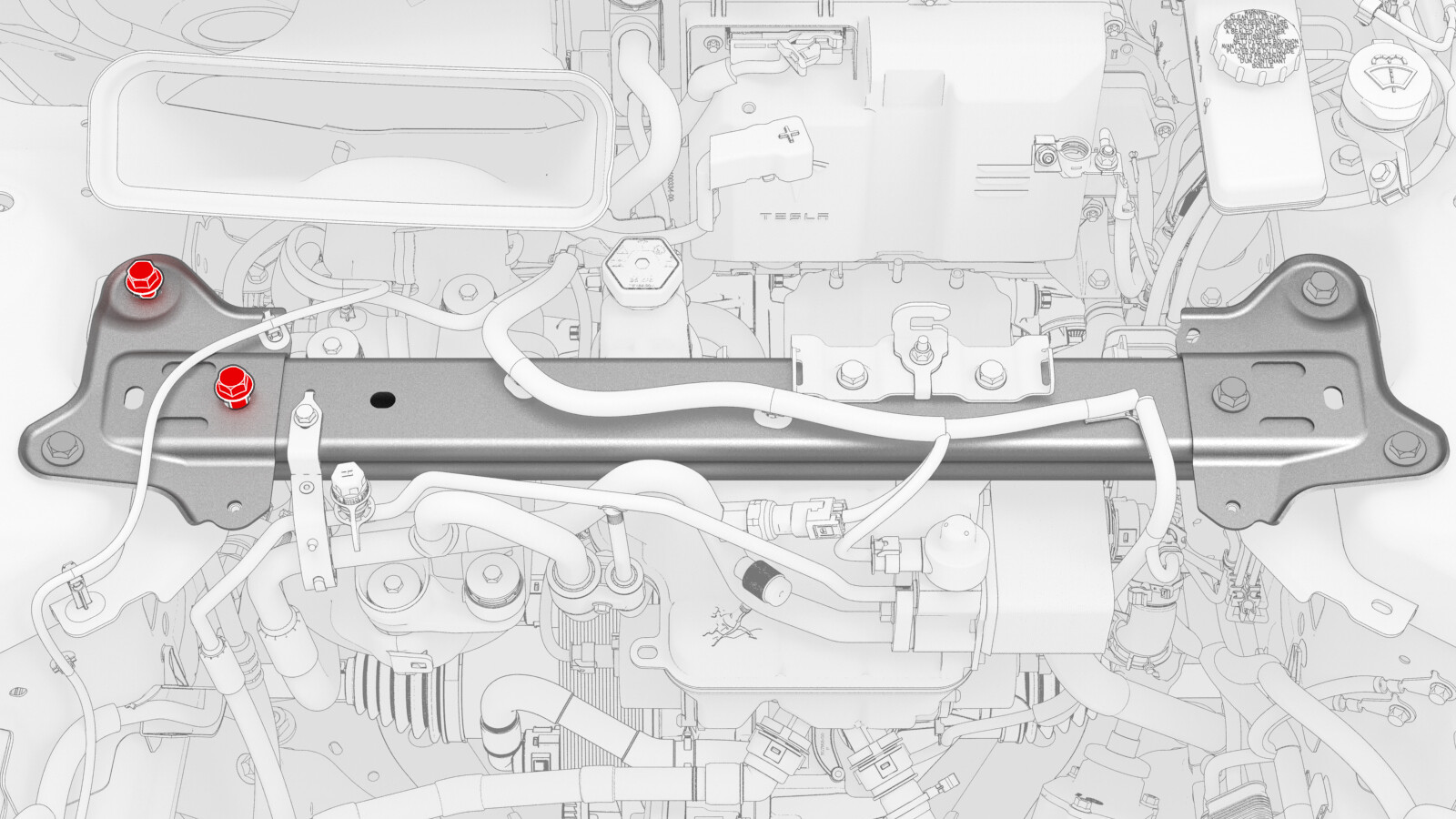 - 拆卸前备箱后部挡板。请参阅前备箱挡板 - 后部(拆卸和更换)。