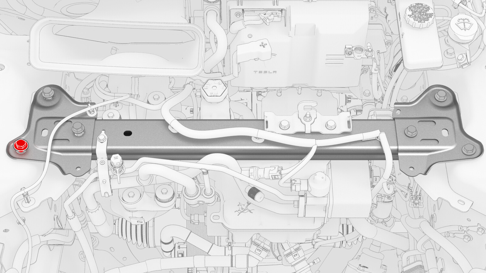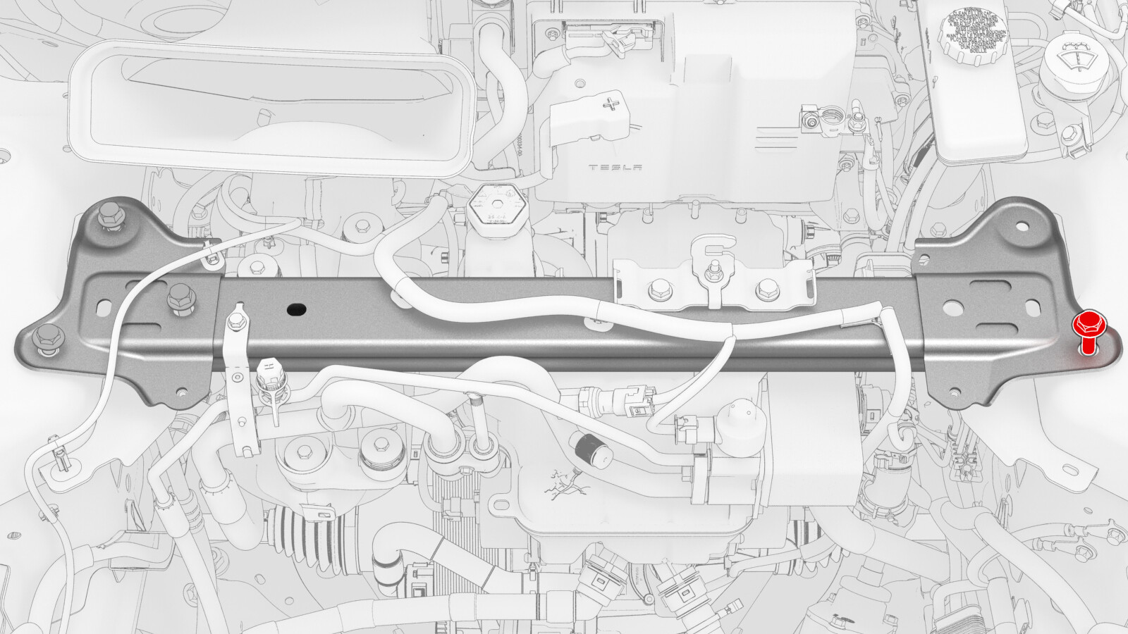 - 拧松将减震塔支架固定到右减震塔的内部螺栓。