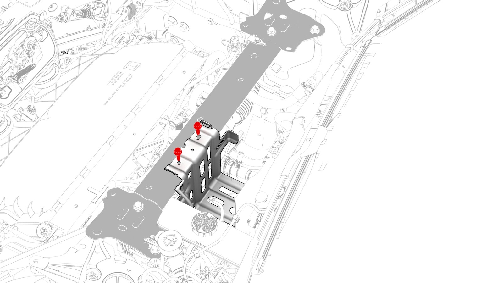 - 拆卸将电池支架固定到车辆的上部螺栓(2 个)。