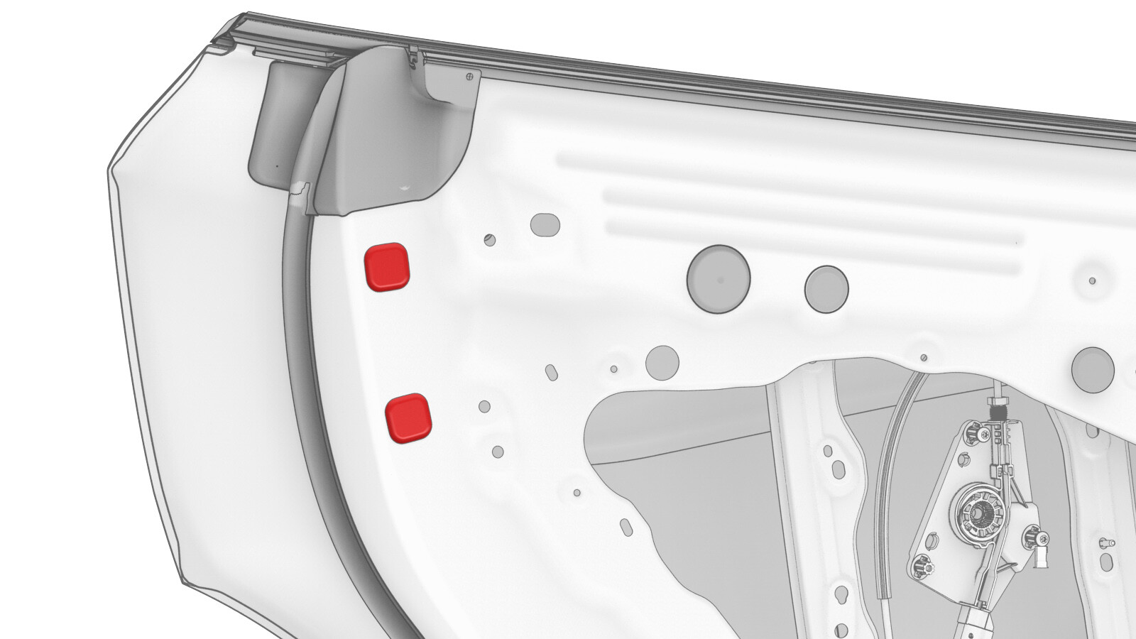 - 拆下用于覆盖 LH 后门外部开锁把手螺母空间的螺塞 (x2)。