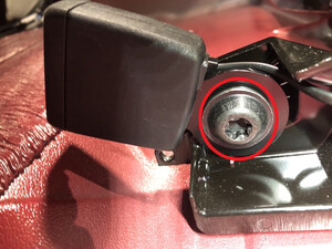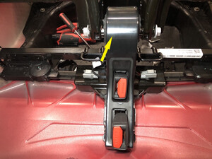 - 紧固将第三排 LH 座椅安全带锁扣电气连接器固定到座椅框架总成的夹子。