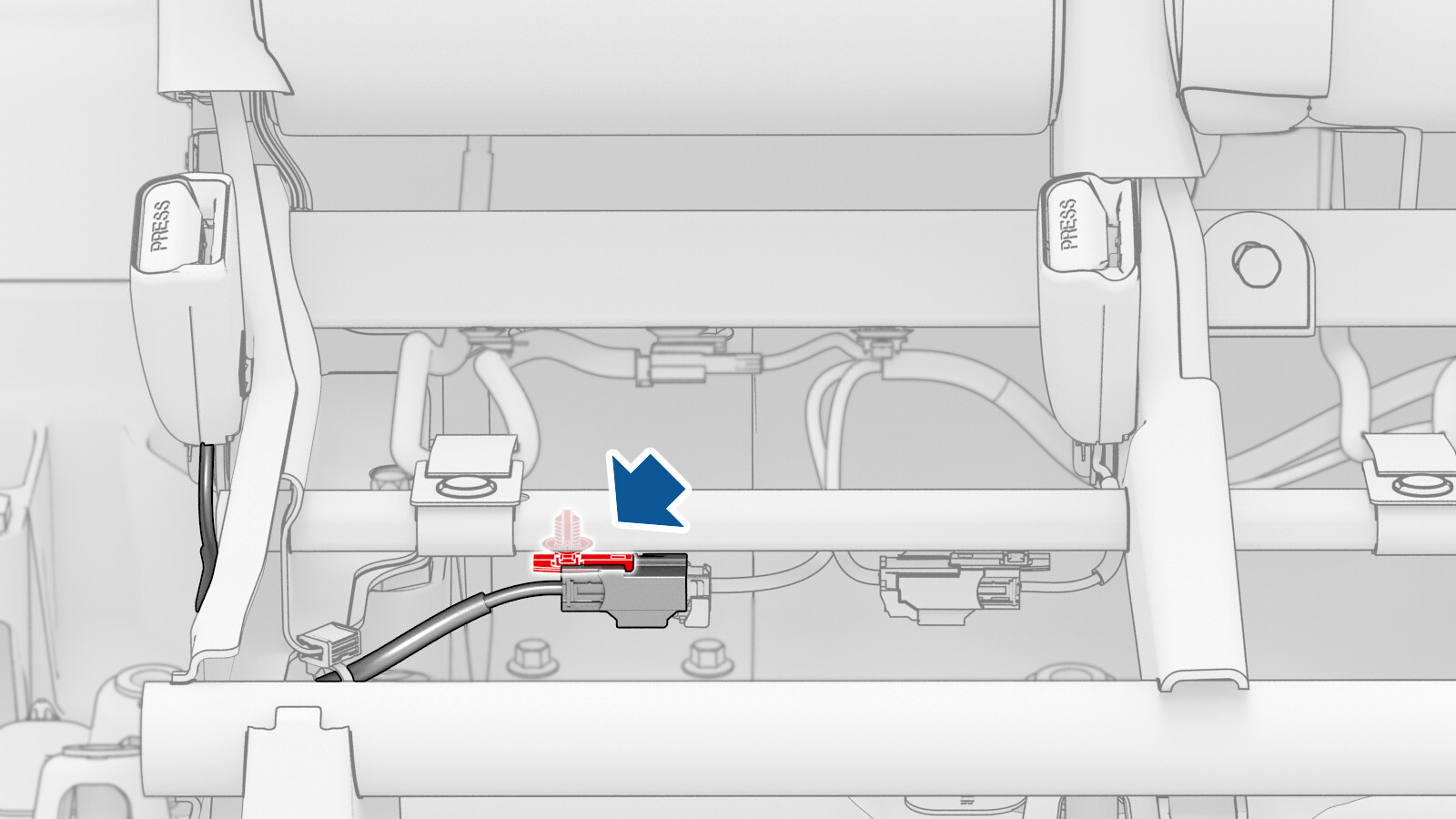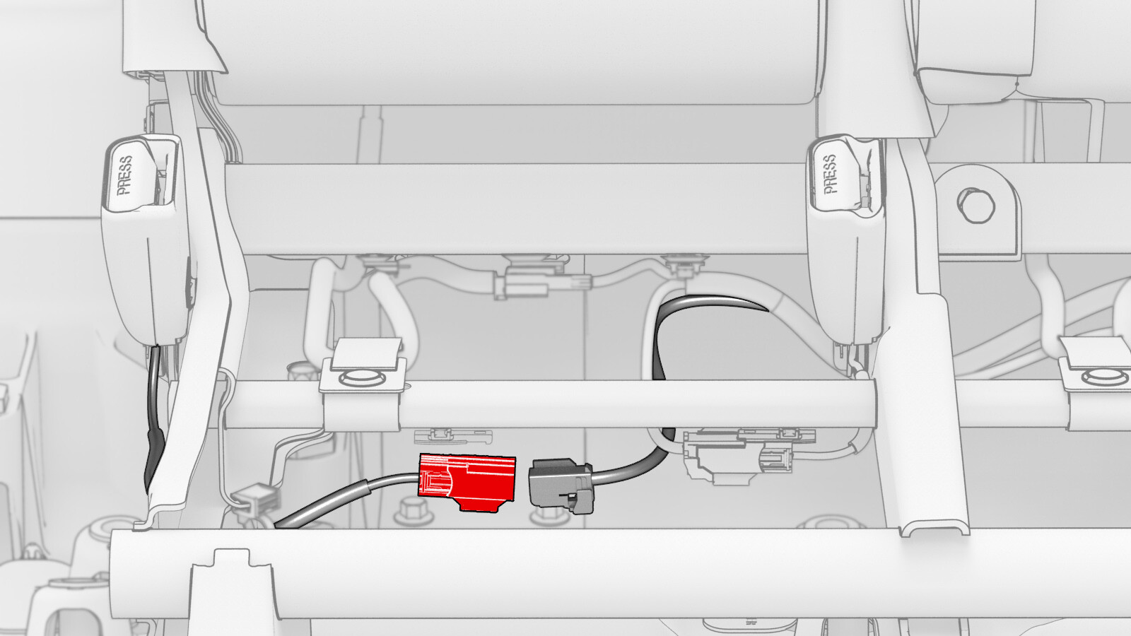 - 将中间锁扣连接器连接到左侧座椅框架线束。
