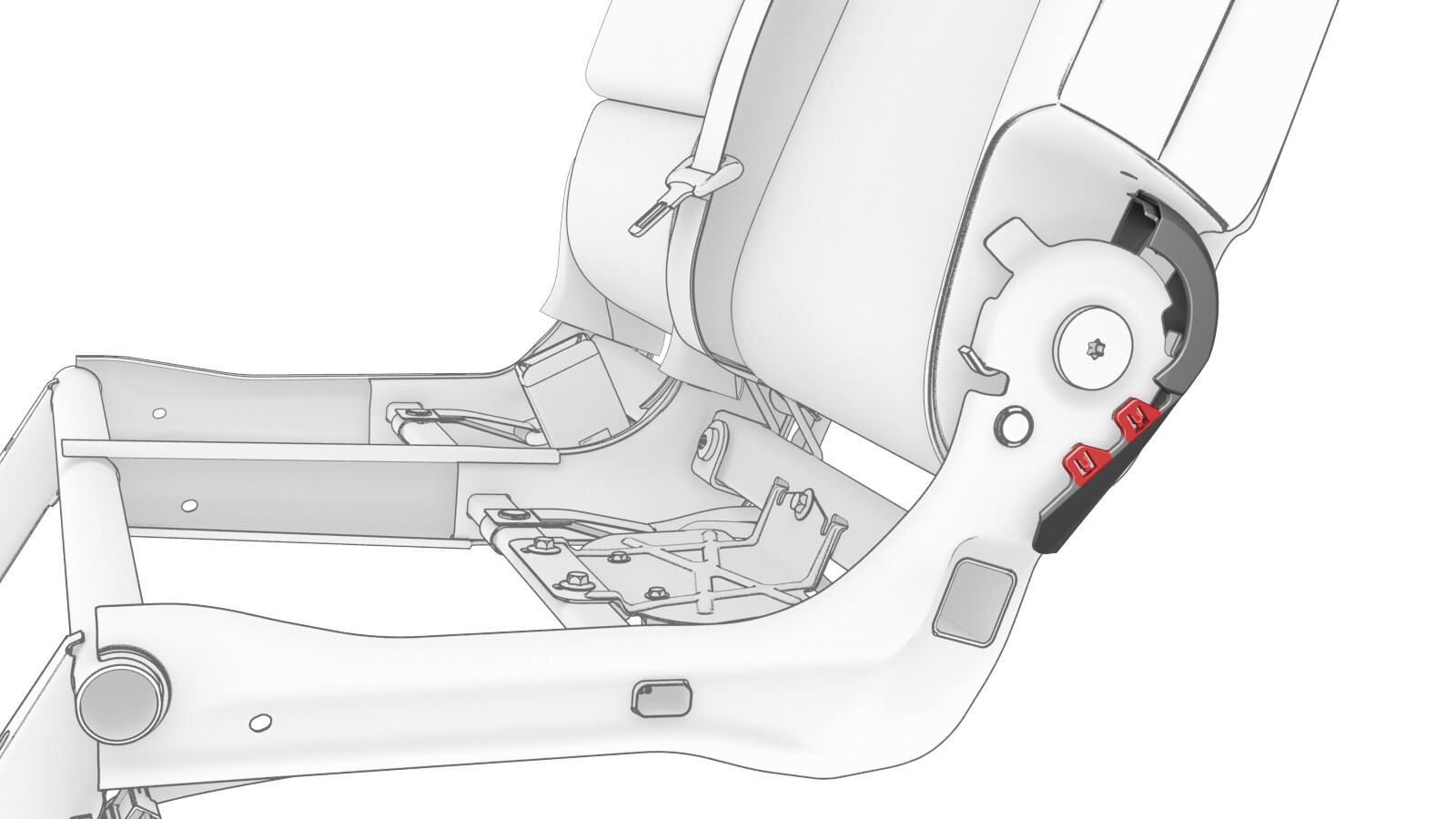 - 松开将 LH 外侧第二排 B 柱盖板固定在座椅上的夹子,然后向前拉动饰板,将其从座椅骨架上拆下。