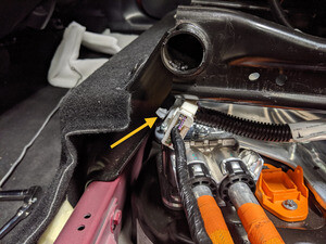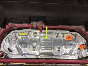 注检查高压电池仓是否缺失任何绝缘体;如有缺失且能够安装,应在进行下一步之前予以安装。