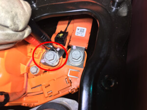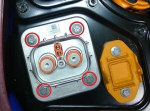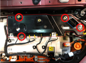 拆卸将高压电池仓盖板固定到高压控制器的紧固件。