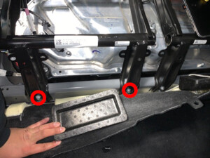 注4 个螺栓,11 毫米,37 Nm;座椅底部螺栓位于主地毯后部