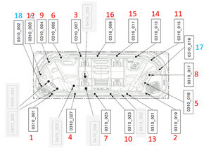 注18 个螺栓,E10 五角,8 Nm。使用无磁铁 E10 五角套筒;紧固件已安装,并将固定到高压电池仓盖板上