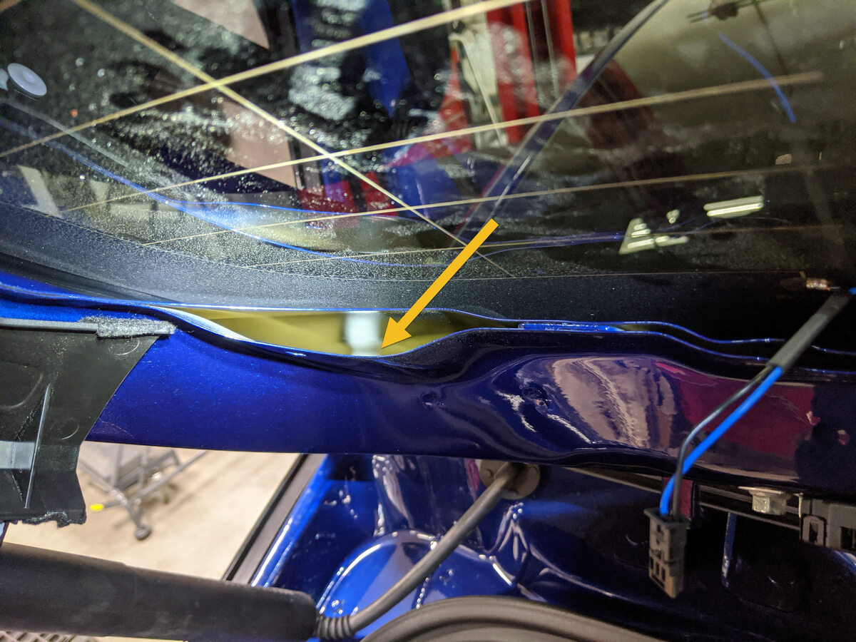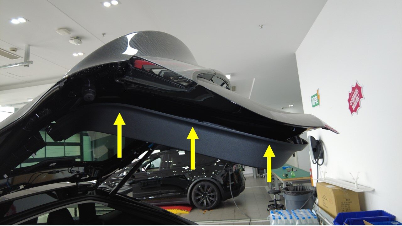 沿聚氨酯路径在掀背尾门上涂抹聚氨酯底漆。