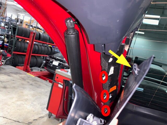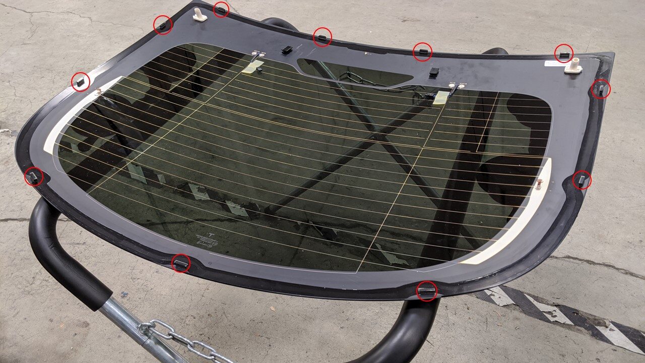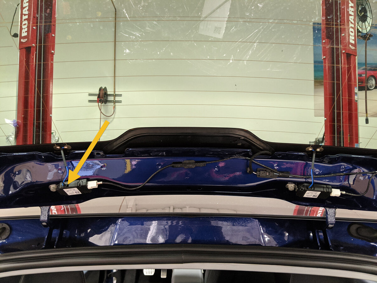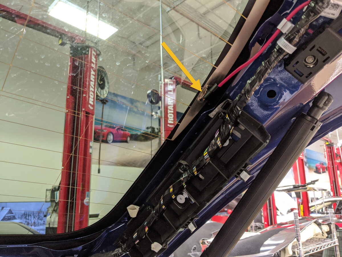 将左侧天线滤波器连接到掀背尾门玻璃。