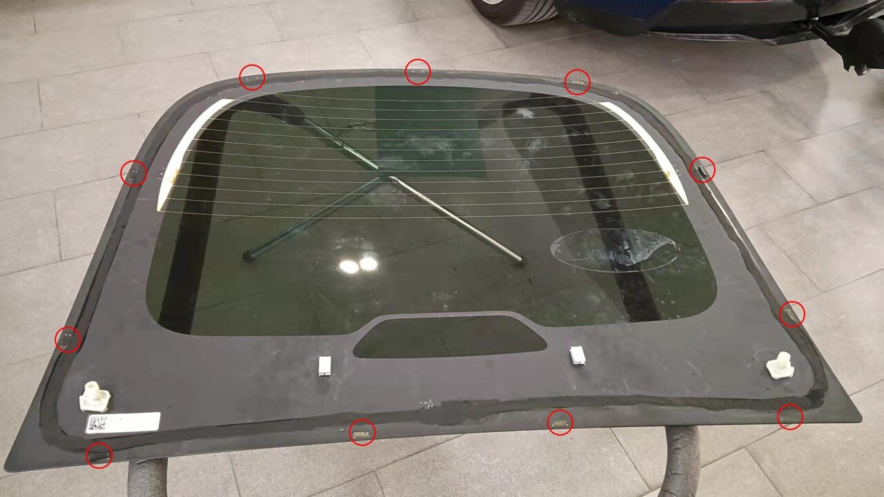 - 将锚固点连接到背光灯玻璃总成内部并紧固线缆。