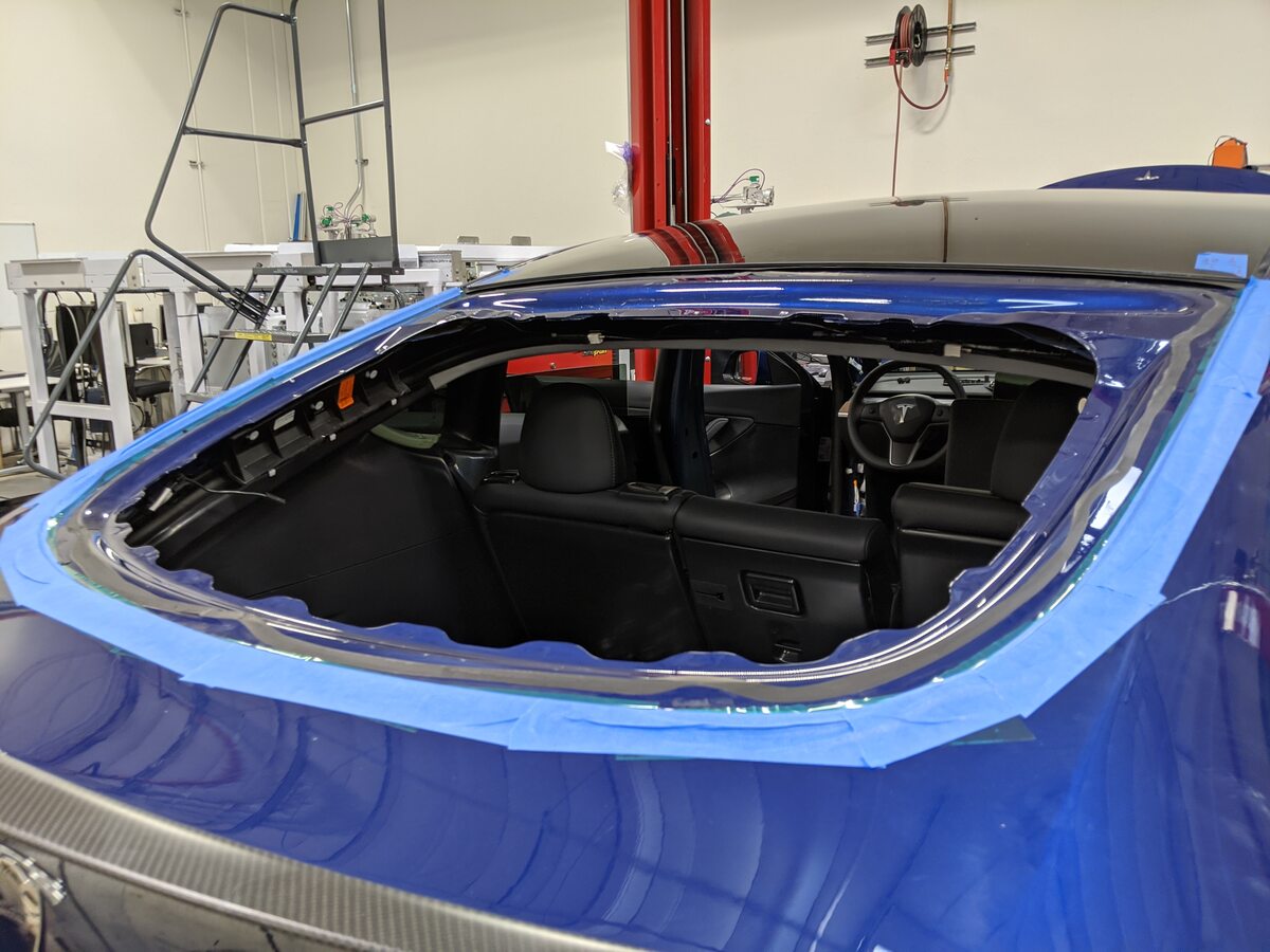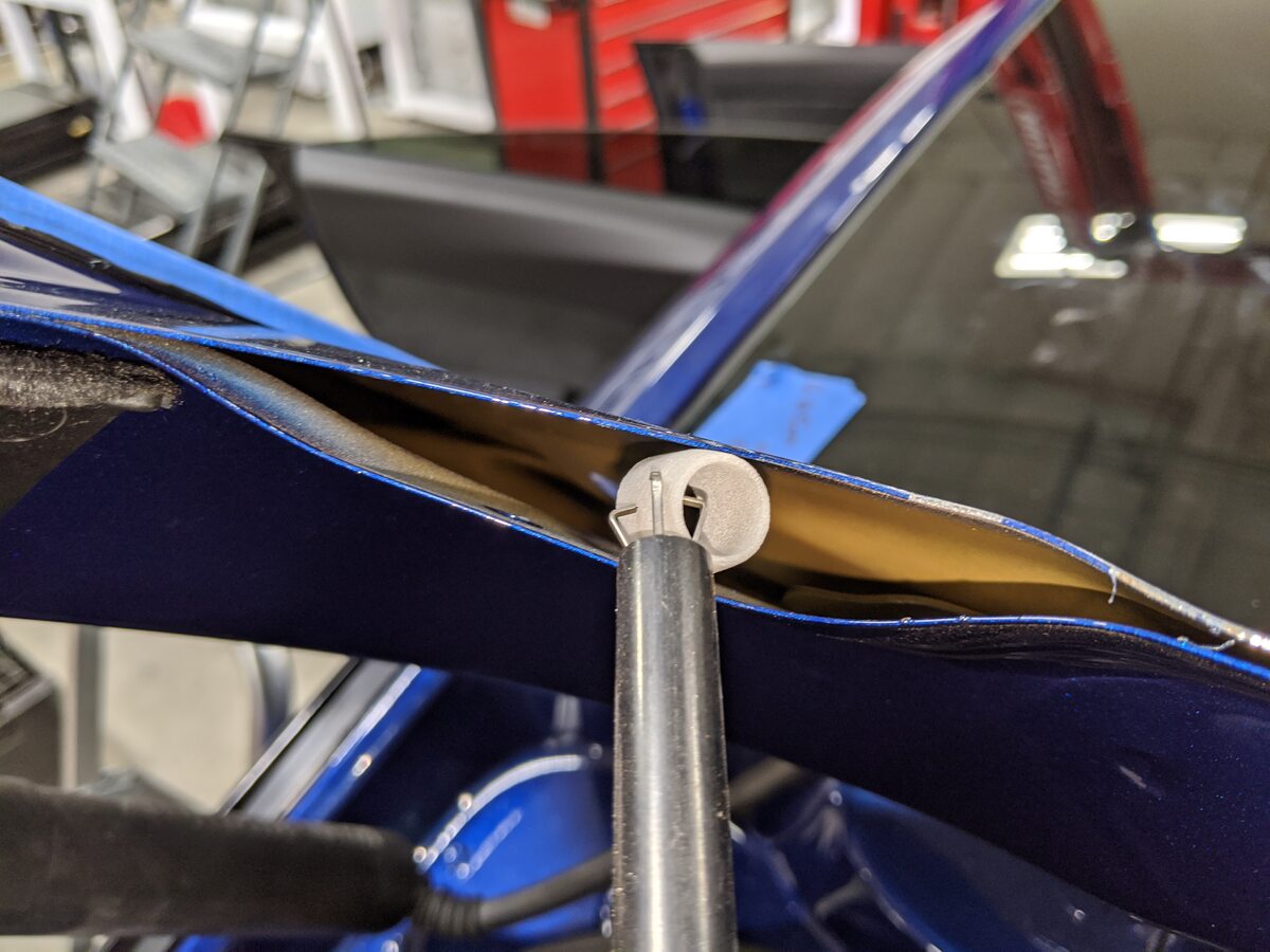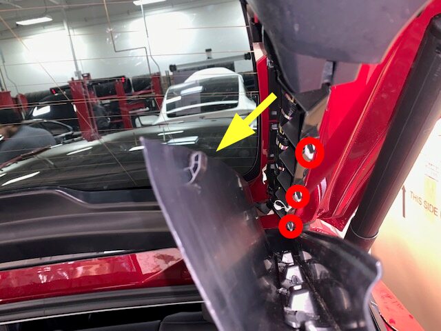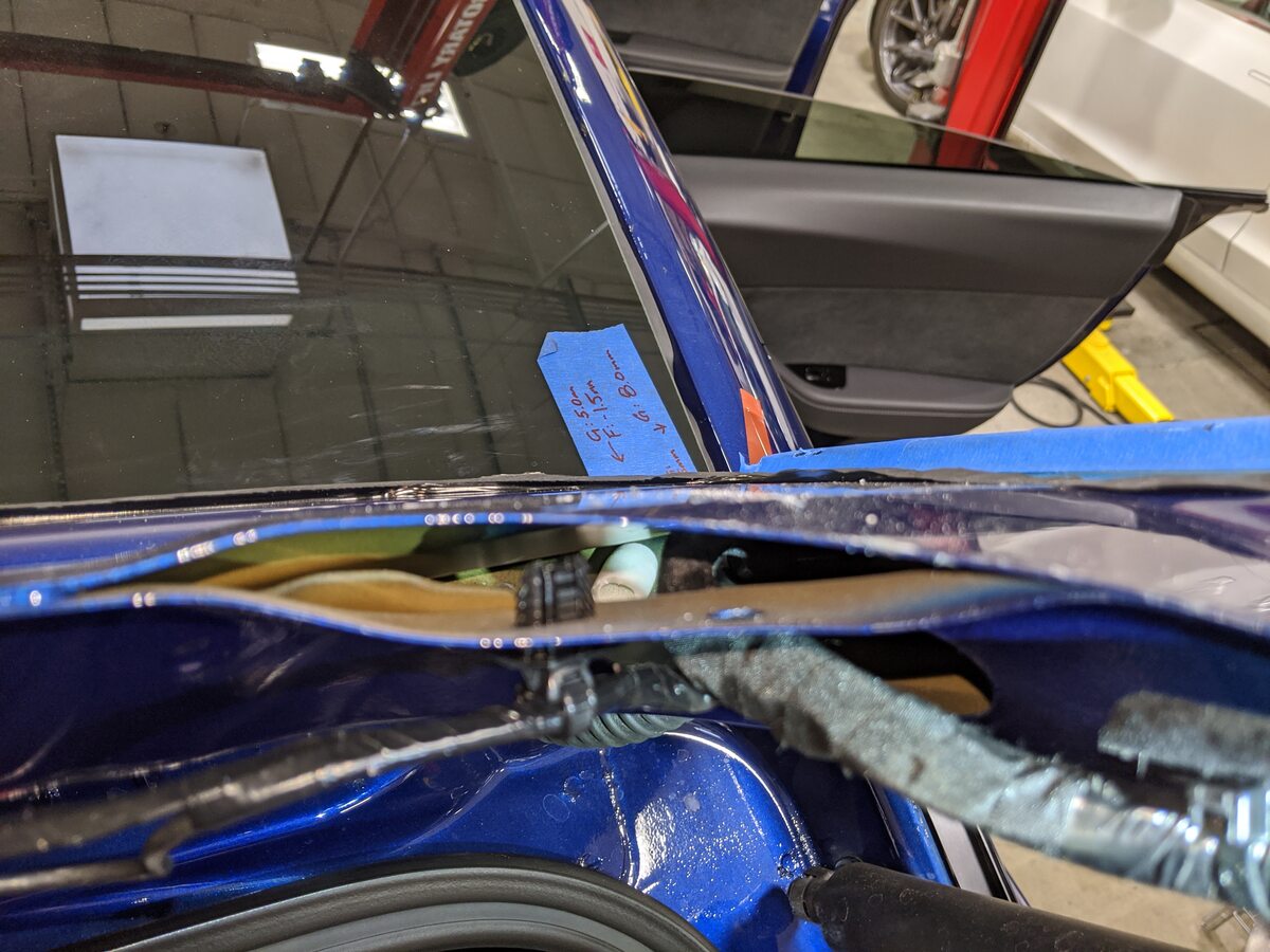 将工具插入后角处的车顶玻璃聚氨酯中。