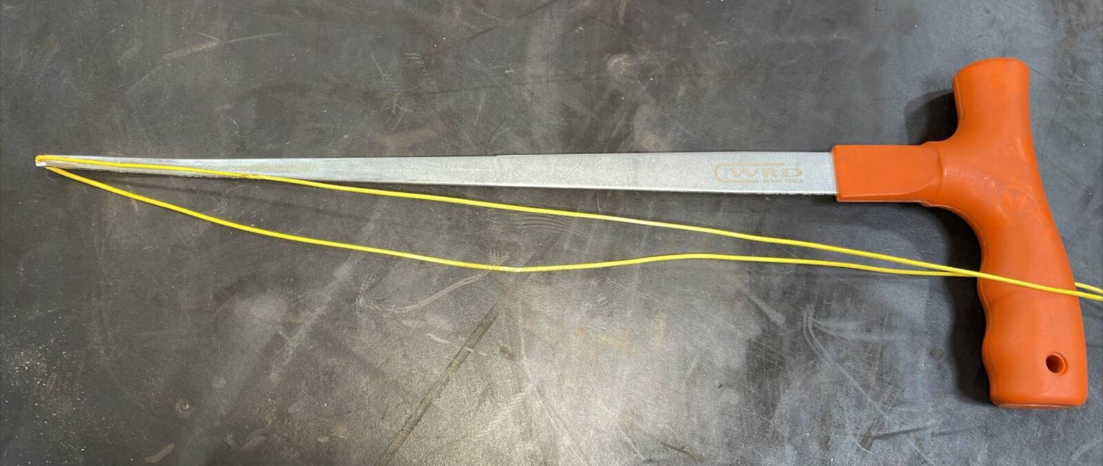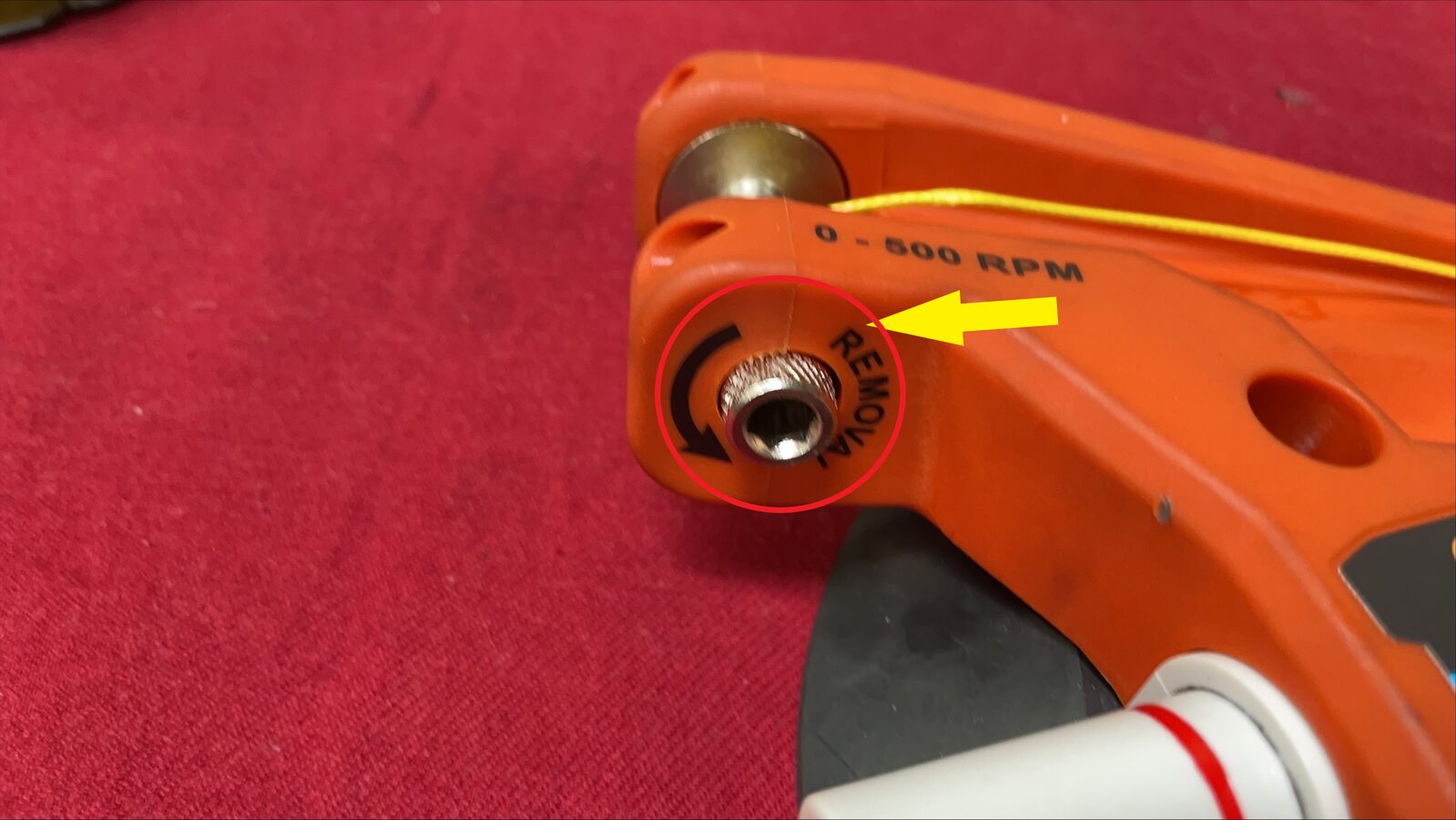 注按照 spider 工具的说明,将线缆穿过切割工具开口并打结以固定到位;如果未按正确方向转动主轴,将会损坏切割工具。