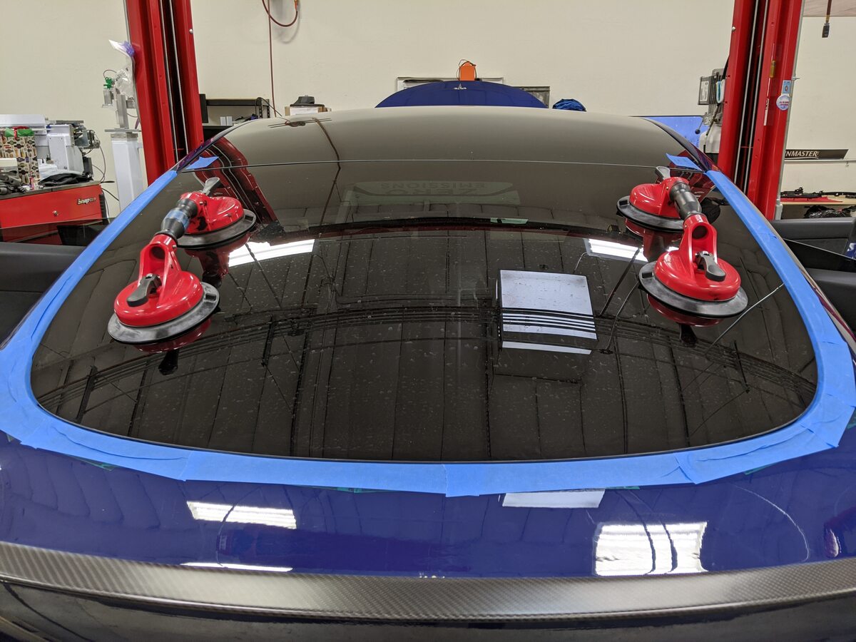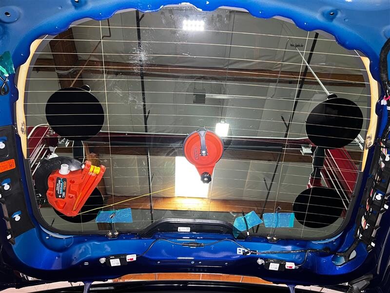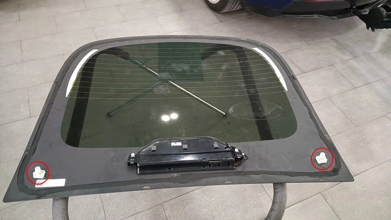 注2 个吸盘手柄;建议寻求他人协助;从车内向上提起玻璃,以便将其拆下;上锁前,先降下后备箱。