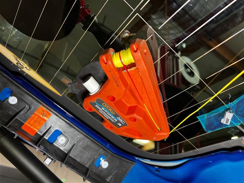 将 Spider 切割工具固定到固定车顶玻璃总成内侧。