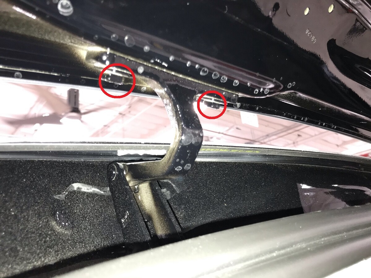 关闭掀背尾门以检查间隙/齐平度。在协助下,根据需要对铰链螺栓和后备箱撞销进行调整。