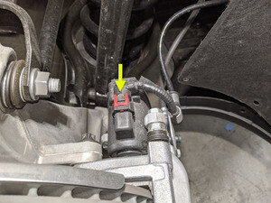 | Bolt that attaches the LH rear EPB harness bracket to the LH rear caliper |