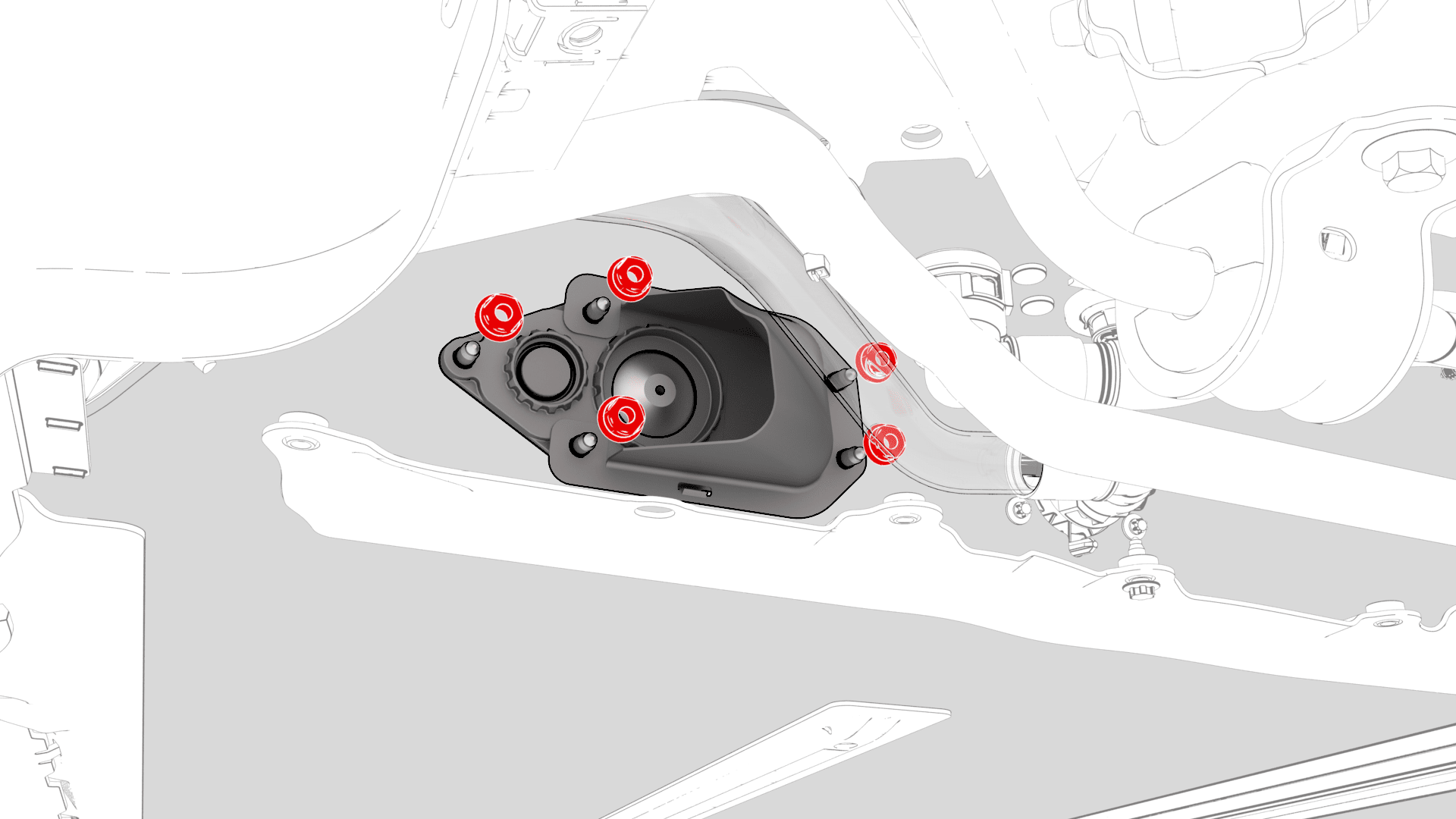 - 拆卸中间流线型护板。请参阅面板 - 流线型护板 - 中间(拆卸和更换)。