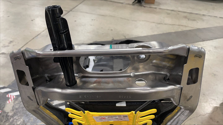 将副驾位座椅侧气囊支柱安装到座椅靠背框架中。