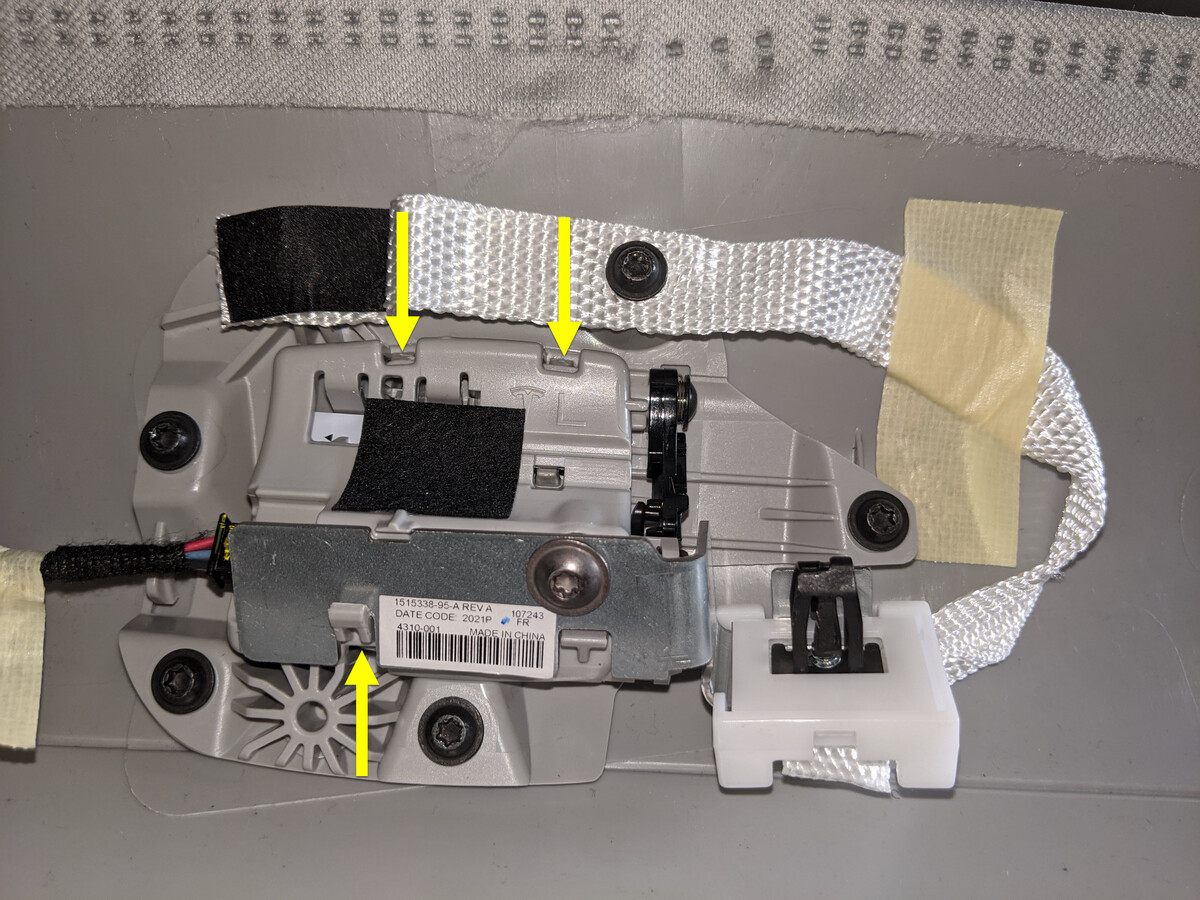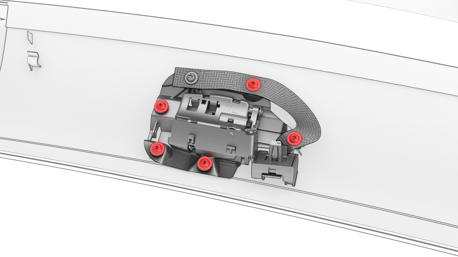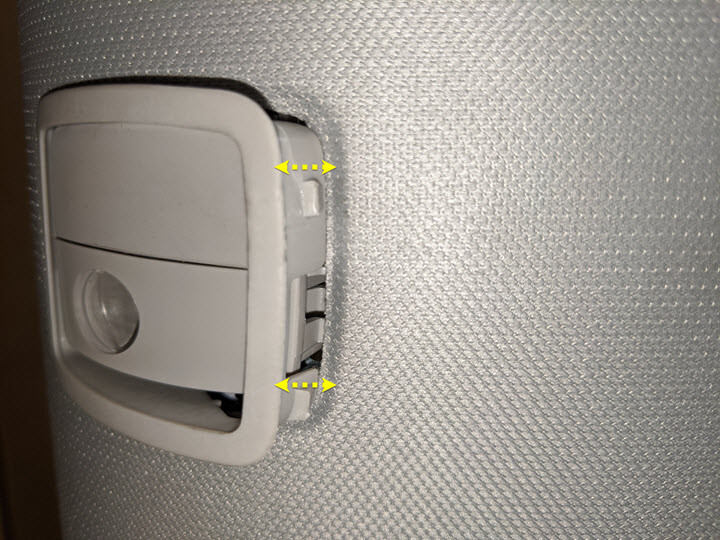 - 松开将衣帽钩固定到顶篷的锁片,然后轻轻地将衣帽钩从顶篷上撬下来。
