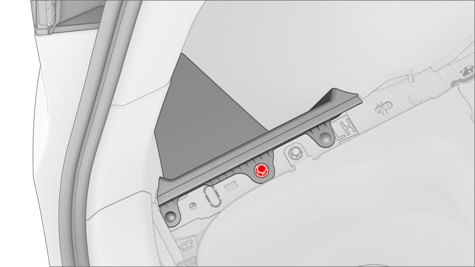 - 松开将 LH 行李箱挂袋支架固定到车辆的推拉式夹和对准锁片 (x5),然后从车上拆下支架。