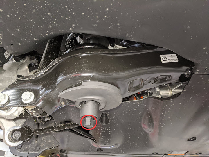 拧紧将左后下部尾连杆固定到后副框架的螺栓。拧紧螺栓后,用油性记号笔标记该螺栓。