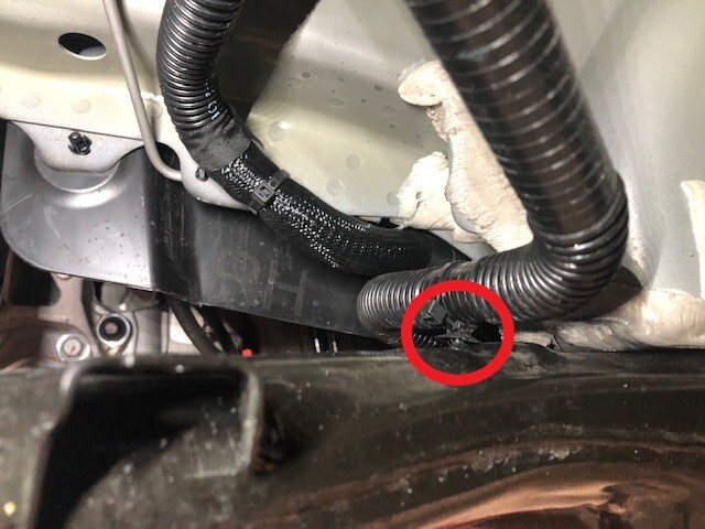 - 安装将动力总成旁路软管固定到副车架右侧的卡子。