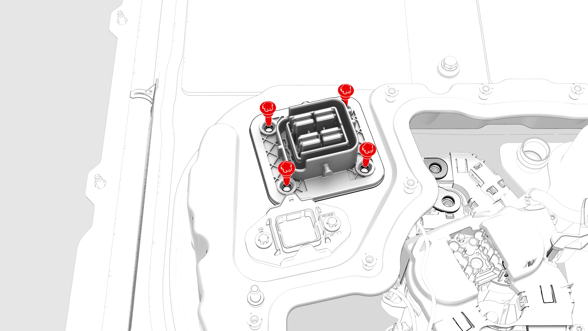 - 拆下将直流输入总成固定到高压电池仓的螺栓,然后将直流输入总成从车辆上拆下。