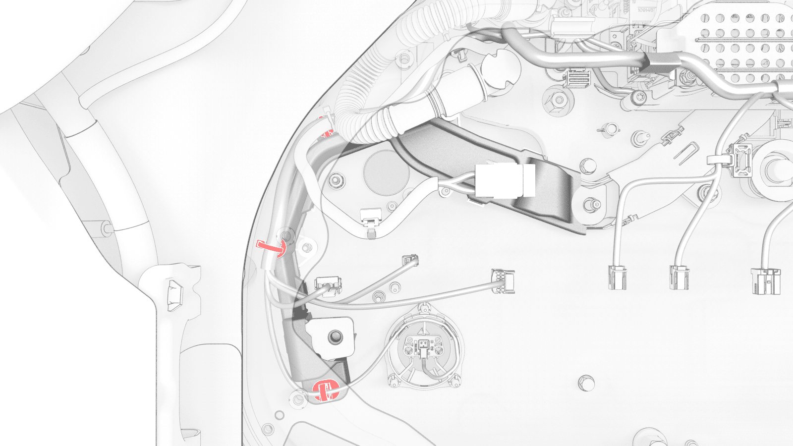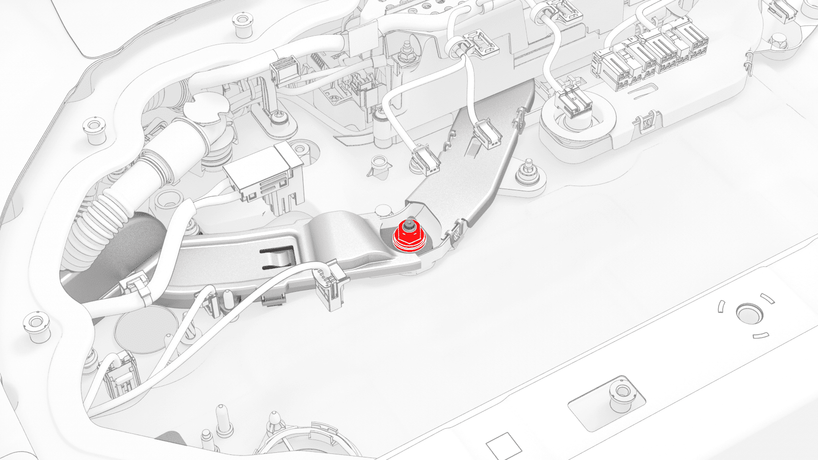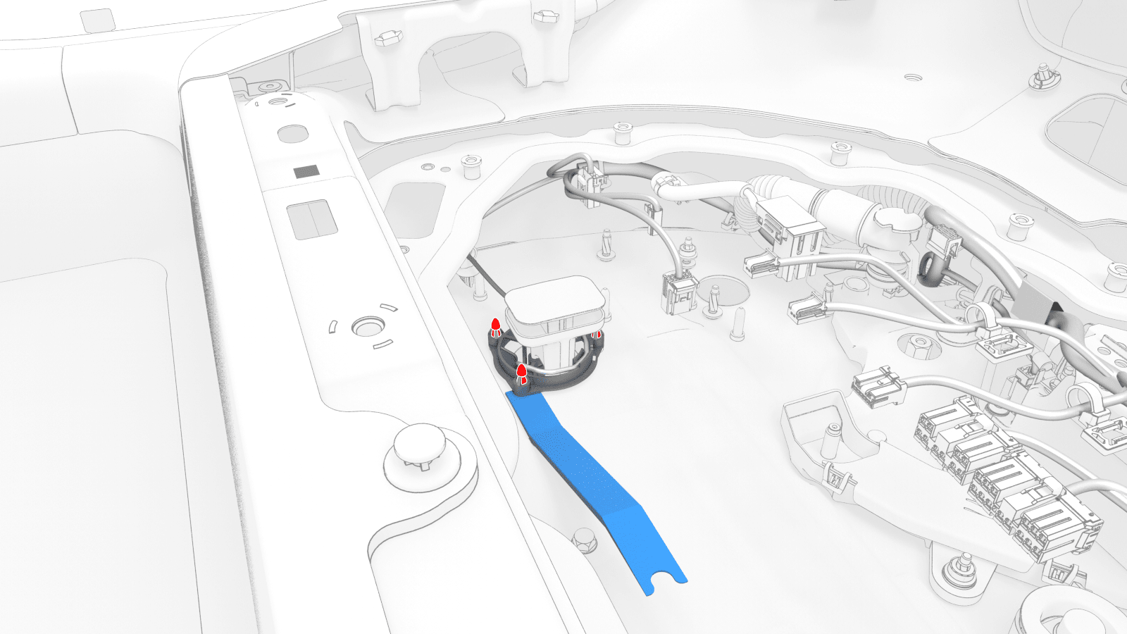 - 紧固将高压电池高压电池仓线束固定到左侧 UFO 附近接线柱的夹子。
