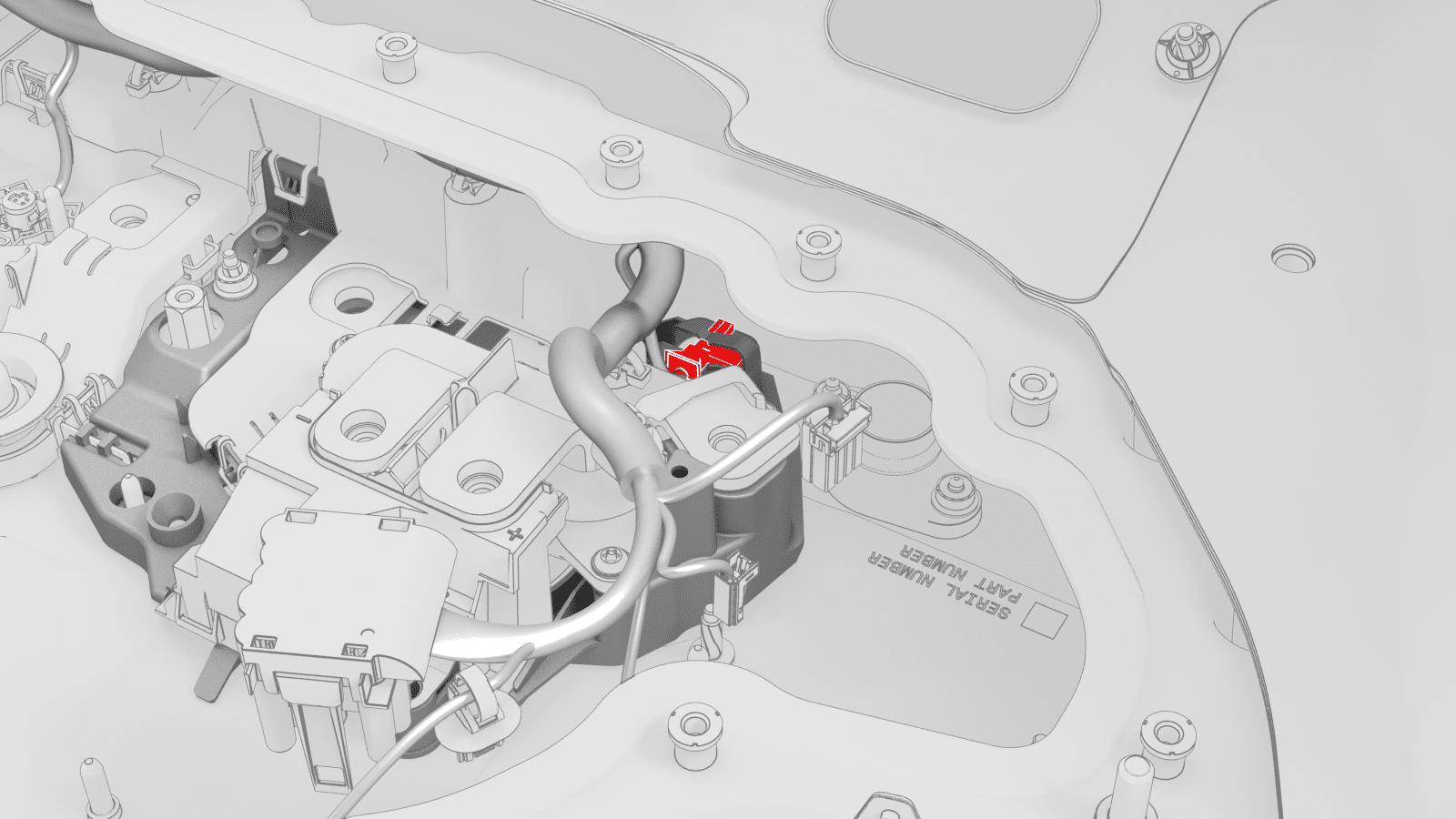 - 如果车辆装配双电机,请将高压电池高压电池仓线束从锁片下方松开,然后断开前驱动单元高压互锁回路的线束。