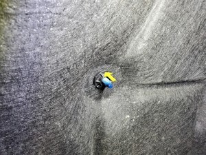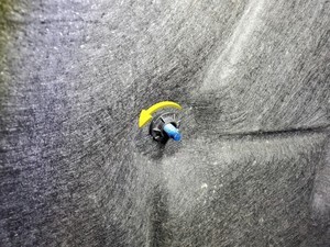 - Position the LH rear wheel arch liner into the vehicle and onto the studs (x10), tuck the liner behind the garnish, and then secure the mid flap over the liner.