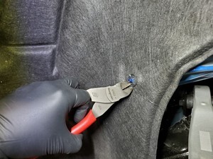 - Release the LH rear wheel arch liner from the studs (x10), and then remove the liner from the vehicle.
