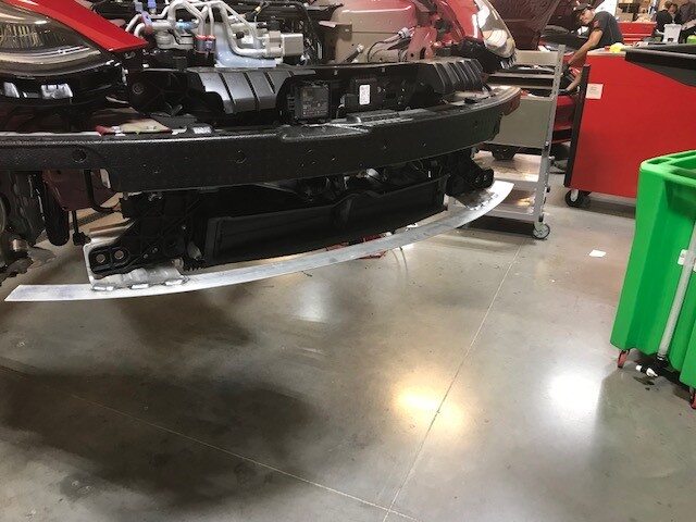 注Use a pry bar as needed to remove front bumper beam, Be cautious when prying not to damage body, Slightly tap with dead blow hammer to assist with removal as needed