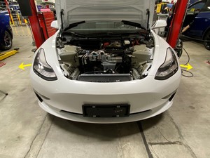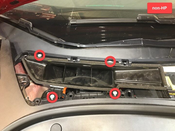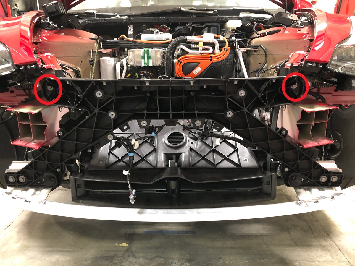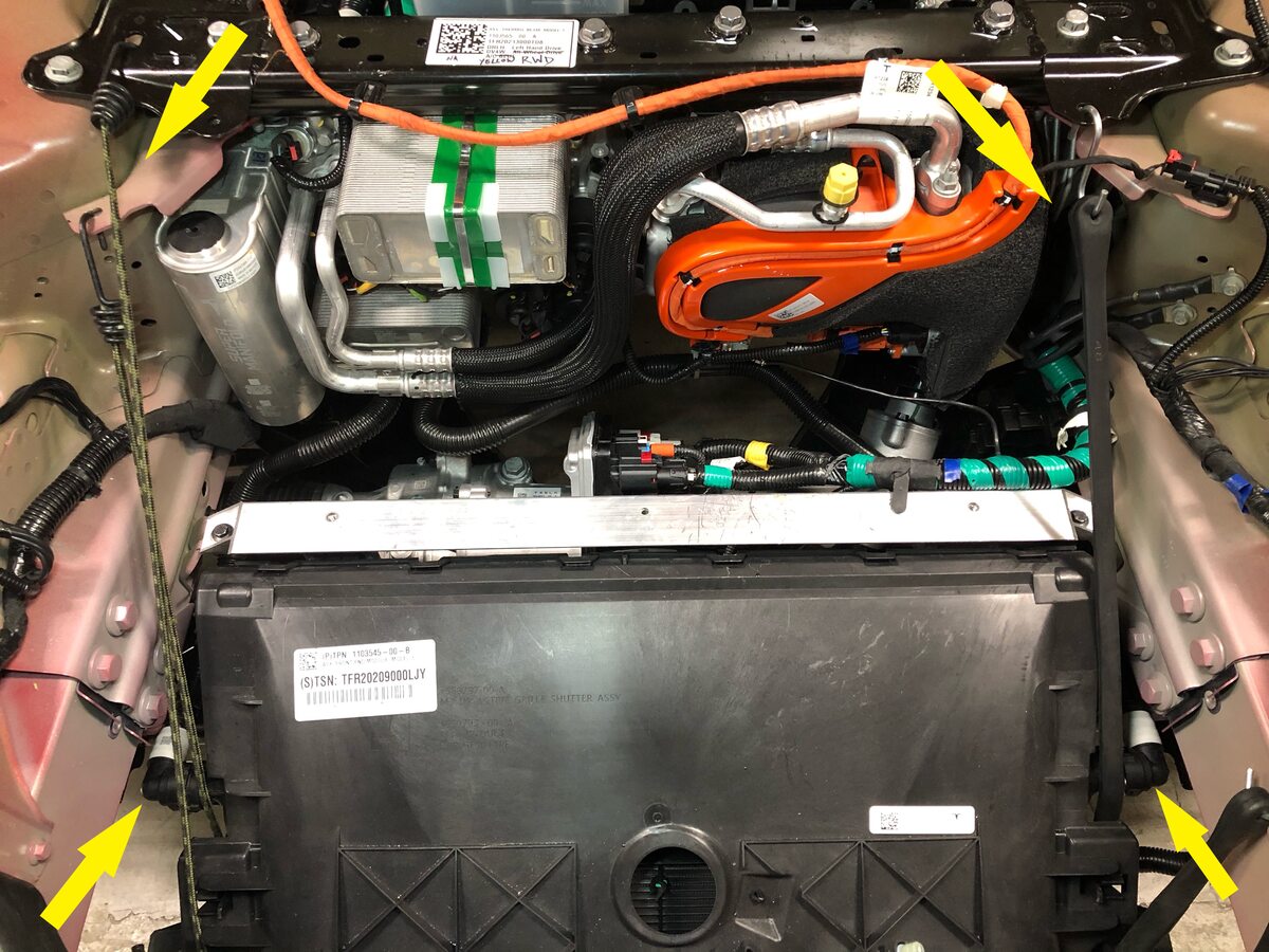 注12x clips. Make sure frunk assembly is fully seated onto clips. Number of clips may vary on older vehicles. Ensure A/C compressor HVIL harness is not pinched between frunk assembly and thermal beam.