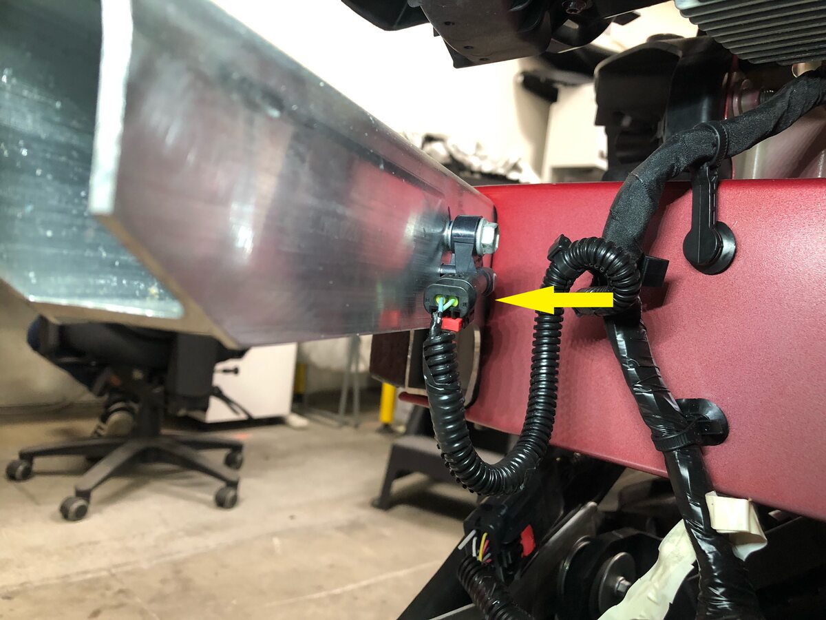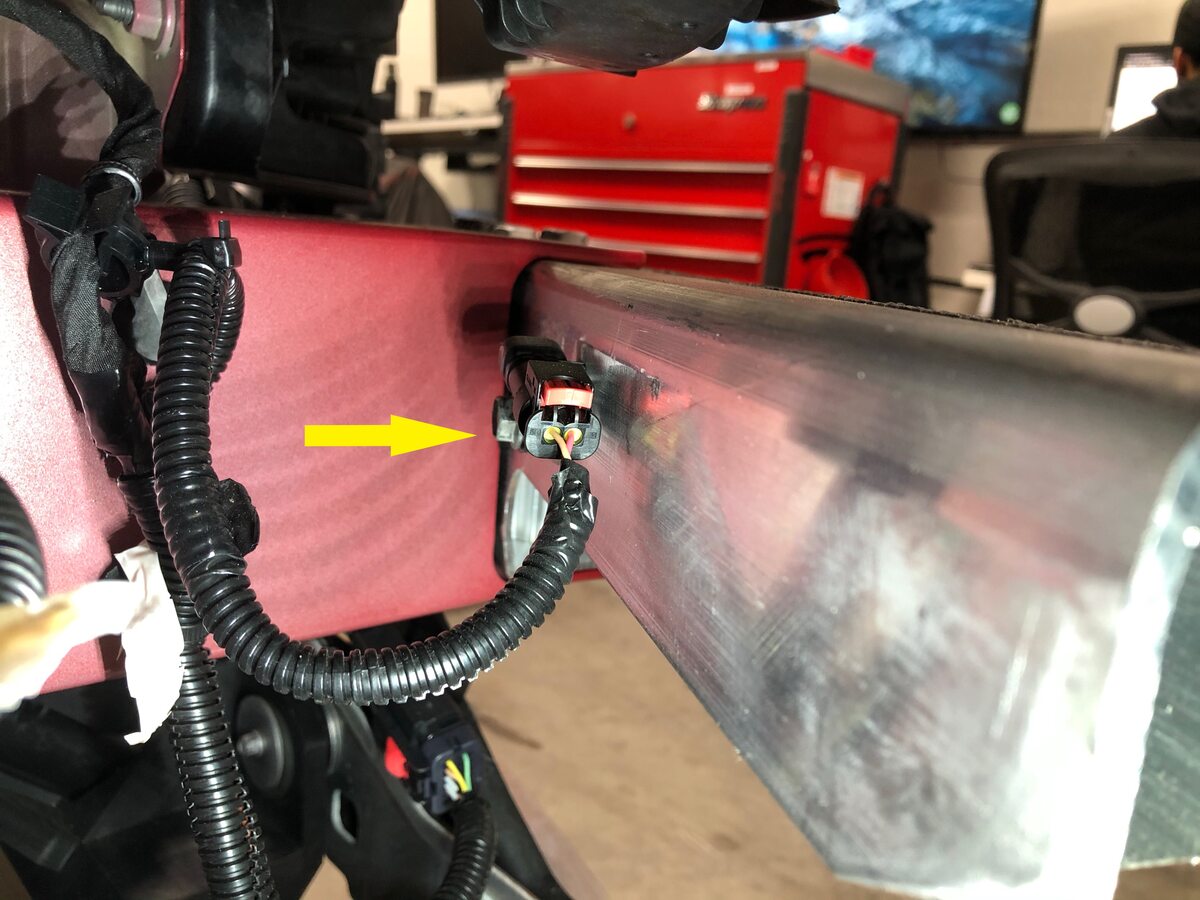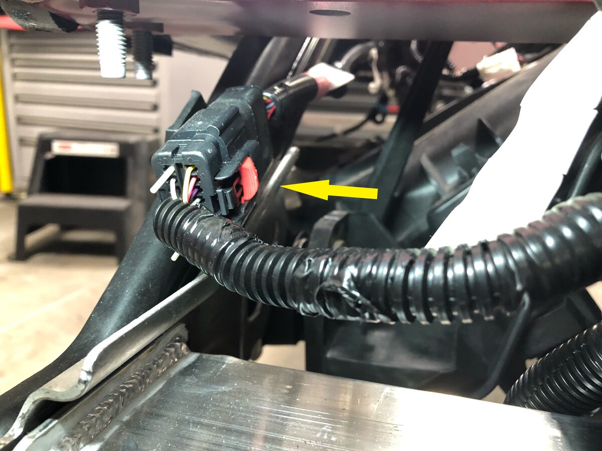 注1x locking electrical connector, Do not push down on red tab, Pull red tab to disengage lock, Pull again to release connector